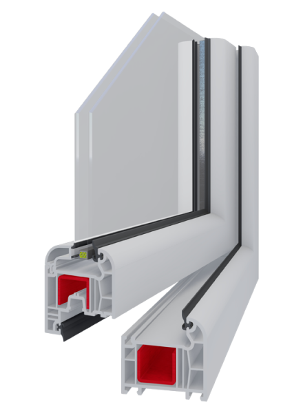 Kasa, kanat ve orta kayıt profillerinde tek tip çelik takviye kullanılır; üretim kolaylığı ve yapısal bütünlük sağlar.